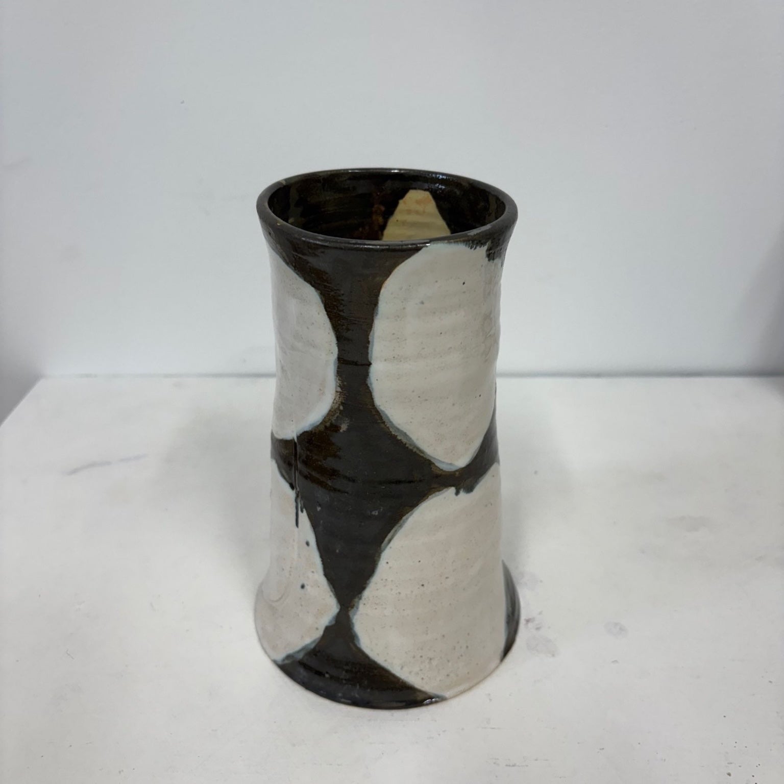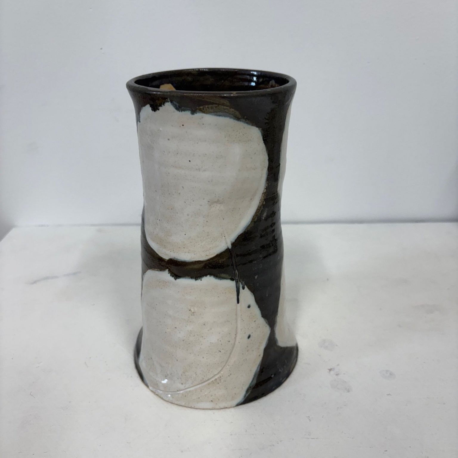 Brown & White Ceramic Vase by Jess Gaddis at Cone Zero Ceramics in Catskill, NY.