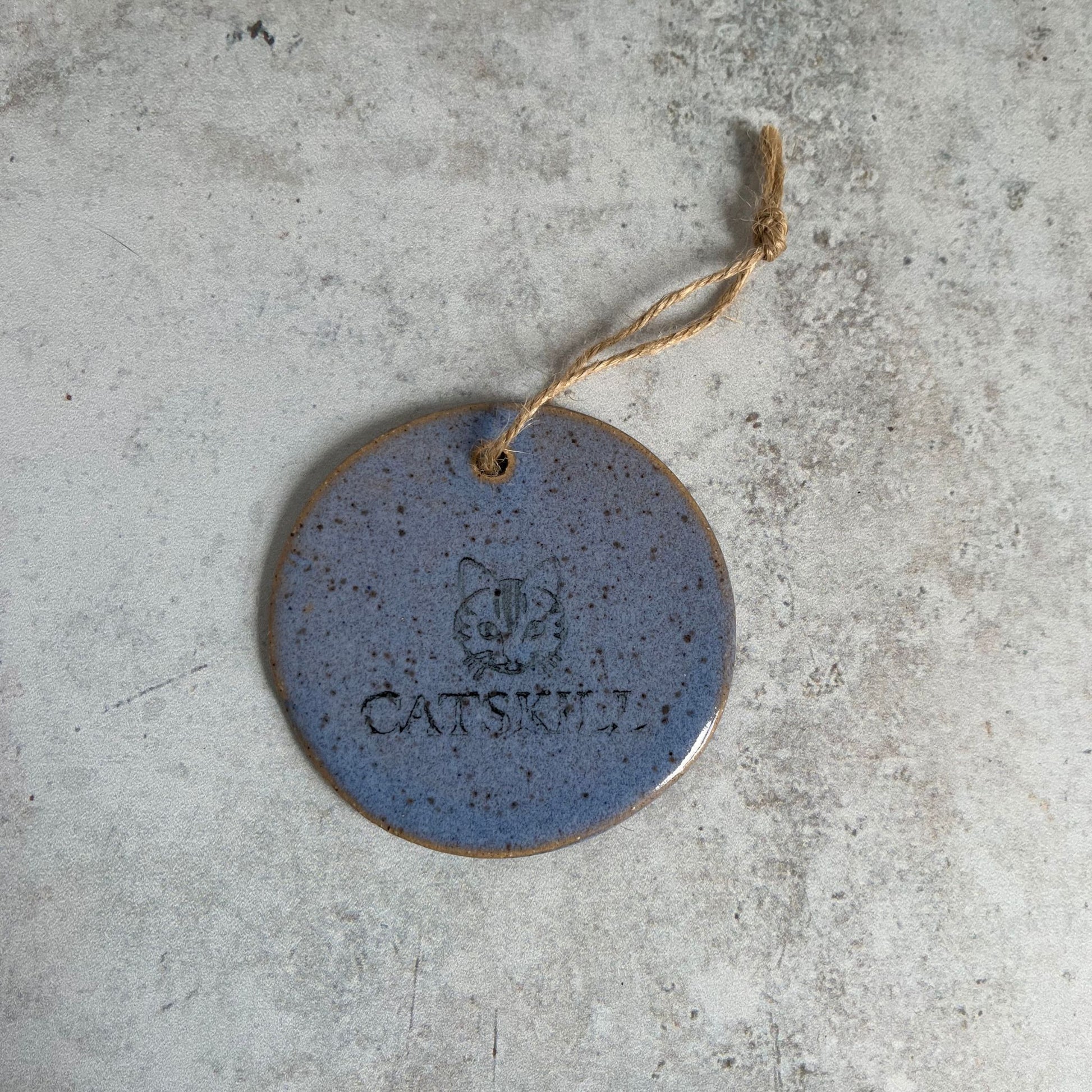 Capture the essence of Catskill, New York, with our exclusive ceramic ornament, a perfect memento celebrating the charm of this historic town. Whether as a cherished keepsake for locals or a memorable token for visitors, this ornament embodies the unique character of Catskill, our hometown, and the location of our brick-and-mortar shop. The round flat ceramic ornament features a sweet cat face and text reading "CATSKILL".