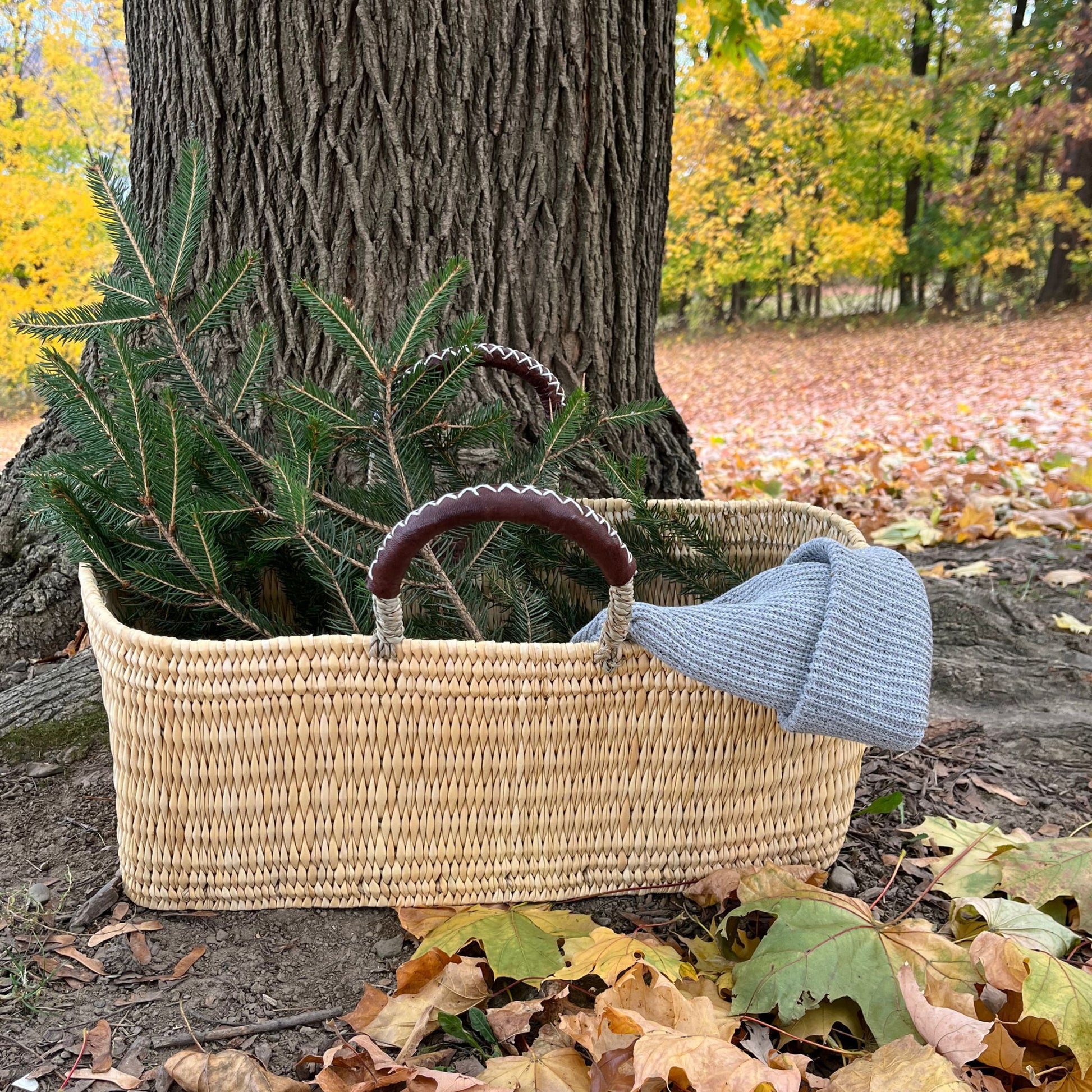 This sweet and sturdy rectangular handled basket is perfect for picking fruits, vegetables, and flowers, or toting to the farmer’s market. The narrow rectangular shape is ideal to nestle into a corner for storage of all sorts. The dimensions also make it uniquely suited to tote around your garden tools. Handmade in Morocco with ethically-sourced woven palm leaves and naturally tanned leather.