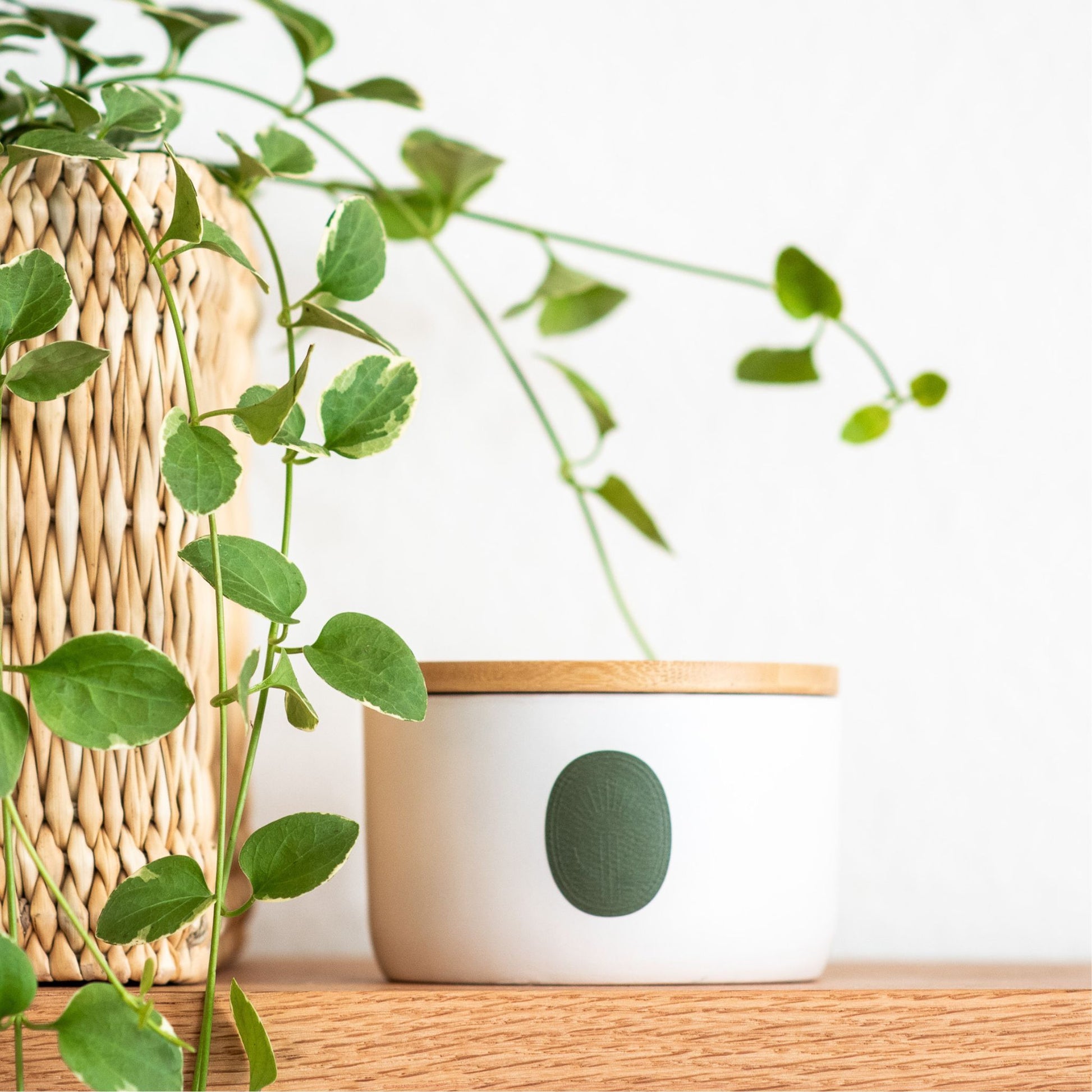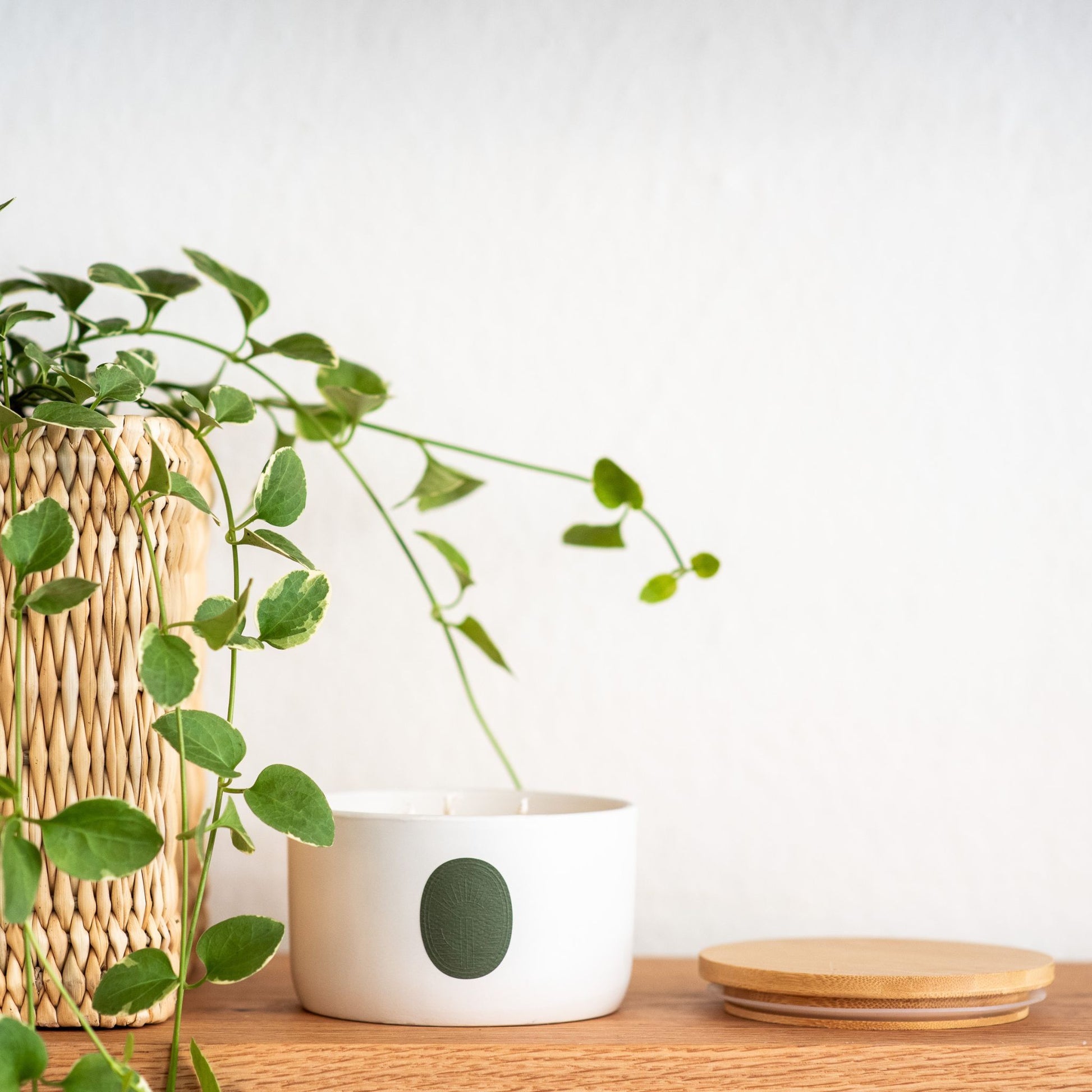 wax, essential oils. Ceramic jar with bamboo lid