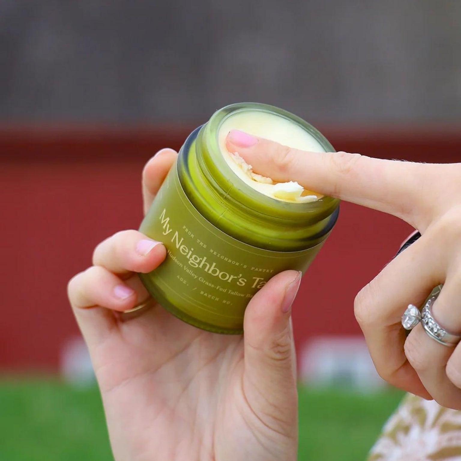 Tallow is rich in omega 3s and vitamins A, D, E, K2, B12, and choline, making it the ideal substance to clean, nourish, and moisturize our skin. Studies have shown that tallow helps promote skin cell regeneration, which allows our skin to renew and regenerate itself more quickly. The essential fatty acids in tallow help keep our skin healthy and hydrated by acting as a natural sealant that locks moisture into the skin. Tallow also helps reduce dryness, increase skin flexibility, and improve our protective skin barrier.